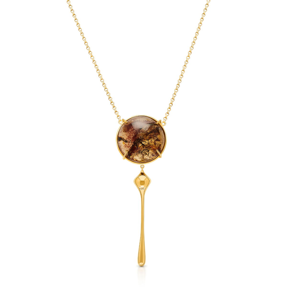 This amber pendant captures the warmth and intensity of the golden hour. With its bold design and the warm glow of amber, it reflects the vibrant energy of sunset, creating a unique piece that draws all eyes.
